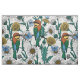 Bee-eaters, blue butterflies and daisies on white fabric