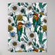 Hand-drawn vector seamless pattern with bee eater birds and common blue butterflies on daisy flowers