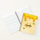 Yellow, white background with a honeycomb pattern. Decorated with sweet, golden dripping honey and happy bumble bees. Templates for your name and monogram letter. Perfect for keeping your notes working from home, your summer recipes or garden, backyard notes.