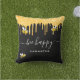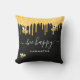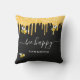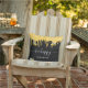 Decorated with happy, smiling bumble bees. A chic black background. Decorated with faux gold glitter drips. White hand lettered script with swashes and the text: Bee Happy. Personalise and add your name. Perfect for summer outdoor living, in your backyard or by the pool.