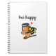 Bee happy cute yellow and blue word art notebook