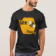 A dark t-shirt with a graphic design. Centred on the shirt is a skull graphic, depicted in shades of dark grey and black. The skull has a serious expression and is surrounded by crossed wrench symbols. The text "LET'S GO KILL SOME BUGS" is placed below the skull graphic in a similar grey colour. The text is stylised with a distressed or worn-out look. The background of the t-shirt is a plain, solid black colour. The composition is centred and symmetrical, focused on the skull graphic design. The style is a graphic tee design, possibly inspired by a vintage or industrial aesthetic. The lighting is even and evenly illuminates the entire design.