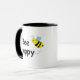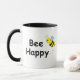 Bee Happy coffee mug has a cute yellow bee buzzing around.