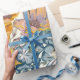 This vibrant artwork features a lively composition of bumblebees and intricate flowers in full bloom. The floral elements, rendered in rich shades of orange, blue, and yellow, create a colourful tapestry that contrasts beautifully with the detailed illustrations of bees. The creamy background enhances the vibrancy of the flowers and the dynamic energy of the buzzing bees, resulting in a lively and engaging pattern that celebrates the harmony of nature.