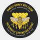Honey bee with open wings icon over bee hive and honey drops. Custom background colour. Four text fields to customise.
