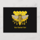 Honey bee with open wings icon over bee hive and honey drops. Custom background colour. Custom text. Seamless pattern background at back side.