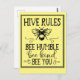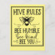 Modern and fun word art : "Hive Rules - Bee Humble, Bee Kind, Bee You" Yellow background.