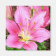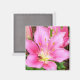 A vibrant pink lily almost glows as a bee collects the nectar.