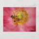 This postcard features a honeybee busy pollinating the yellow stamens of a lovely pink annual Shirley poppy. The gold and black bee inside the delicate pink petals creates an impressionistic, painterly feel.