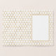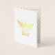 This card features an ornate bee on the front with the work "kind" written below in a script font. There is a border along the outside edge. The front of the card is gold foil on a bright white background. Inside is a gold honeycomb pattern with a white box for you to personalise with a message.