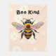 Delicate and Modern Bee design, BEE KIND fleece blanket featuring, a bee with a sunflower on it's back and pastel coloured wings on a white daisy background.