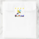 Excellent item. I used them for envelope sealers for a 50 year reunion whose mascot was a lion. Paper material is thick. Also, very colorful! Easy to peel and stick. Excellent! Excellent! Excellent!