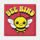 Cute illustration with "Bee Kind" text design and cute, funny Kawaii style yellow and black bee decoration