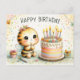 This charming birthday card brings a "Bee-lightful" touch to any celebration. It features an adorable bee character with big, sparkling eyes and a gentle smile, adorned with a floral crown. The bee is making a wish, sitting next to a vibrant, pastel-coloured birthday cake with lit candles ready to be blown out. A tiny cupcake with a pink bow and a neatly wrapped gift add to the festive atmosphere. The backdrop is filled with soft confetti and watercolor splashes, creating a whimsical and heartwarming scene that's perfect for sending joyous birthday wishes to someone special.