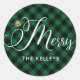 Bee Merry, Green Buffalo Check Round Gift Sticker