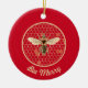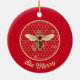 Bee Merry Royal Bee and Honeycomb on Red Ceramic Ornament