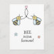NewParkLane - Cute Valentine's Day postcard, featuring two cute little bees cartoon and colourful flowers and quote: 'BEE mine forever!' in a fun script typography. The backside has a cute little flower and a Happy Valentine's Day wish.
