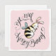 Fuzzy bunny bee wants to be your Valentine. A cute illustration with a sweet hand lettered message on a pink background. Inside says "‘cause Honey, life is sweeter with you. Hoppy Valentine’s Day." with a hand drawn love heart. Personalise it with your name.