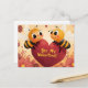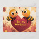 This adorable Valentine’s Day postcard is perfect for spreading sweet, buzz-worthy vibes! The front features two cheerful bees with rosy cheeks perched on a vibrant red heart, surrounded by blooming flowers and fluttering hearts. The playful message, "Bee My Valentine!", adds a charming and whimsical touch to the design.