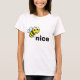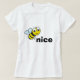 The bee cartoon and the word nice create a fun, original design. It's a funny way to express the phrase, Be nice. Makes you smile.