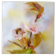 Honey bee on a pink flowers of a Japanese cherry tree - sakura. The beauty of spring season. Soft pink and yellow colours. Prints and gifts for anyone. Square format products and souvenirs.
