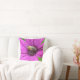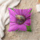 A throw pillow emblazoned with a little bee on a bright purple flower.