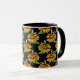 Bee on Sunflower Flower Pattern Design Black Mug