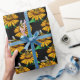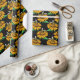 Bee on Sunflower Flower Pattern Design Black Wrapping Paper