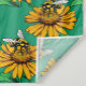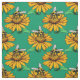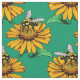 Bee on Sunflower Flower Pattern Design Green Fabric