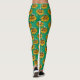 Bee on Sunflower Flower Pattern Design Green Leggings