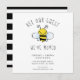 Fun moving announcement featuring an adorable bee with the cute saying "Be Our Guest" set on a white background. Flip our new address card over to view a coordinating black & white stripe background.