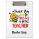 Personalised Teacher Clipboards with cute bee design, with quote "Thank You for bee-ing a great Teacher" - perfect as teacher thank you gifts / teacher appreciation gift.