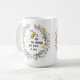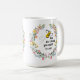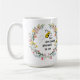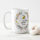 Start the day off right and with motivational thinking whenever you utilise this beautiful wildflower wreath coffee mug that also features a bee doodle with inspirational messaging: "bee the change you want to see".