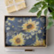 Bee w Sunflower Floral Rustic Navy Wood Decoupage Tissue Paper
