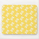 Cute illustration of a harmonious repeat pattern of bumble bees swarming across a yellow wallpaper background design. Image available on various gifts and products.