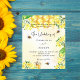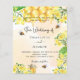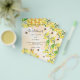 A stylish white and golden watercolored background. Decorated with bumble bees, melting honey and honeycomb with yellow florals, flowers and a honey jar. With the text: The Wedding of written with a modern hand lettered style script. Personalise and add your names.