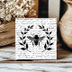 Bee with Laurel Wreath and French Handwriting Ceramic Tile