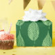 Wrapping paper in an all-over textile pattern of beech leaves, digitally rendered as a soft, textured, chalk drawing, in pastel mint green on a deep emerald green / evergreen background