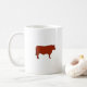 Decorated with a red Angus bull illustration, this coffee - hot drink mug celebrates grass fed beef cattle, ranching, free range farming, and other subjects. In North American, red Angus beef cattle are popular for their high quality meat.