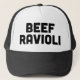 BEEF RAVIOLI fun and bold slogan on trucker hat, black, ironic, typography, funny statement, inspired by tv character frank rossitano. beefy ravioli. dat pasta.