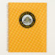 Professional Beekeepers Planner to record details about your bees and hives during the season, with our classic "Beehive Apiary Name Wildflower" honey jar label printed directly on the cover. Vintage skep type beehive with honey bees flying at the centre of a round icon, over a golden honeycomb background. Customised round text with the name of the beekeeper or apiary, contact information, product type, with the planner title and year below the hive. © dotpattern