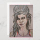 A girl with a beehive hairdo walking down the street from a original coloured pencil drawing