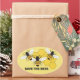 A graphic illustration of a honeybee and honeycomb by artist/designer Charmaine Paulson on a "Save the Bees" sticker.