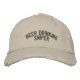 It's super durable and the embroidery hasn't frayed or ripped at all! It's also adjustable in size! Super amazing. Hasn't come off or anything.