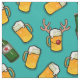 Beer bottles and beer glasses - Christmas, festive fabric with alcoholic beer deer. Cheerful template