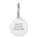 I looked through a lot of pet stores and web sites then I saw Zazzle and a tag with guitars in the background so we added his name and photo o nether front and our phone numbers on the back. It was beautiful and unique just perfect