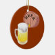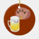 Celebrating Octoberfest? Great beverage design of a foamy, frosty mug of beer and a wooden beer keg. Both on a deep red background.