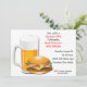 Beer N Cheese Burger Invitation. Hope you're hungry! This delicious looking BBQ invitation features a large cheeseburger on the left side of the card next to a tall mug of freshly poured beer. Ideal for Barbecue Invitations or Adult Birthday Invitations