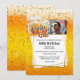 An modern and fun beer foam and bubbles background has faux gold confetti stars and string lights hanging behind two mugs of beer that are resting on top of a square geometric faux gold frame with a white inlay that has black font templates for your customised wording on the front and a photo template for your selected picture of the birthday boy. These fabulous invitations are ideal for any party you may be hosting or celebrating for your boss, father, grandfather, husband, brother, son or nephew.