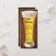 A big glass of cold beer sits on a wooden table awaiting to invite your guests to a beer tasting birthday party where beer is the drink of choice. The reverse shows the wooden background with the beer already consumed, but optional information can be added here. Available with matching products.